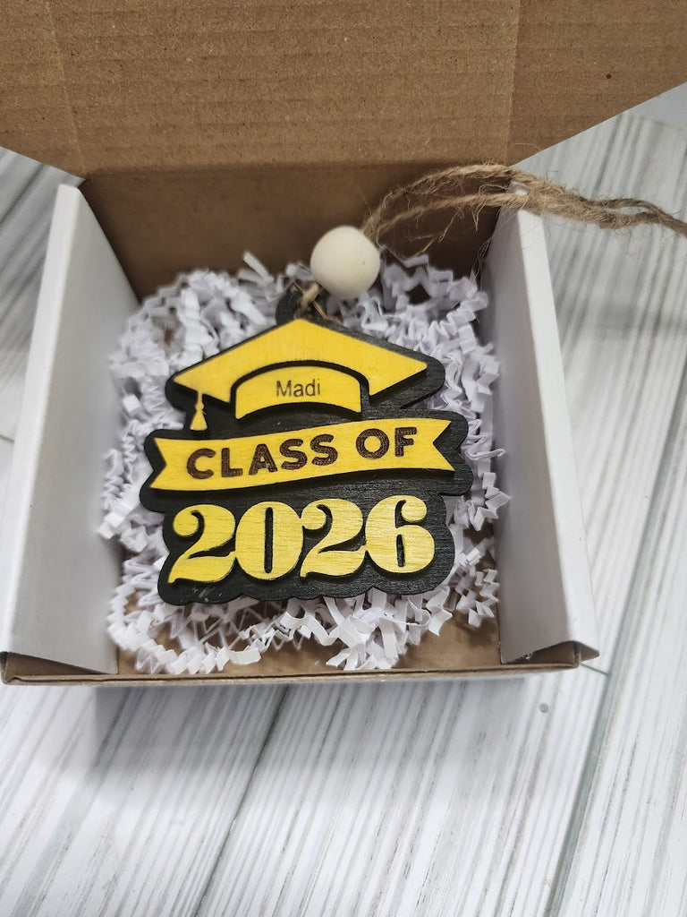 Celebrate the class of 2026 with our laser cut wood ornament! Perfect for gifting family and friends, these ornaments come in any school colors to make them even more special. Show your school pride and celebrate a special occasion with our Senior Ornaments.
